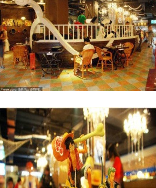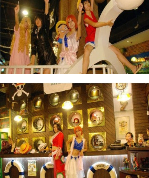 這家位于廈門的海賊王主題餐廳,有著近20米長的“黃金梅列號”成為最大特色。顧客可以坐在“船”內品嘗店內主打的烤肉。每天店內都會安排cosplay表演,顧客可以與coser們合影留念,同時6也可以登上船頭與歌手們飆歌一曲。