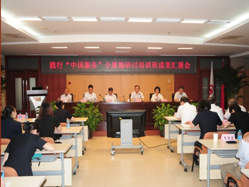 首先,踐行“中國服務”研討培訓班負責人匯報了培訓班的課程設置、培訓情況和效果。其后,培訓班6個小組代表分別進行了培訓成果匯報。