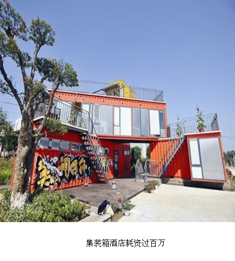 而在中國,深圳、山西、江蘇等地均有用集裝箱做成的大型集裝箱酒店。深圳東部華僑城咖酷旅館就是這樣一座環保酒店。東部華僑城負責人介紹,旅館擁有200余間客房,全部用集裝箱打造,采用不同色彩的拼圖碎片為主題,每間客房可容納4位到6位住客。今年春節期間,入住率達到9成以上。與建造傳統酒店相比,集裝箱酒店的施工周期減少4成、施工量減少6成,不失為一個比較好的投資項目。