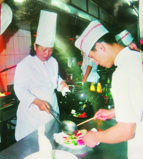 “縫紉”?崔玉芬一聽這倆字動了心:“這個活適合女孩子,報它吧。”就這樣,崔玉芬被順利錄取,報道時她才發現,原來不是縫紉,而是烹飪啊!一開始她不太了解烹飪是什么意思,跟同學嘁嘁喳喳了半天之后,才明白烹飪就是做菜,就是當廚子。她特別反感,甚至偷偷地將服務學校的校徽換成衛校的校徽,但是又無法退學,只好硬著頭皮上下去。