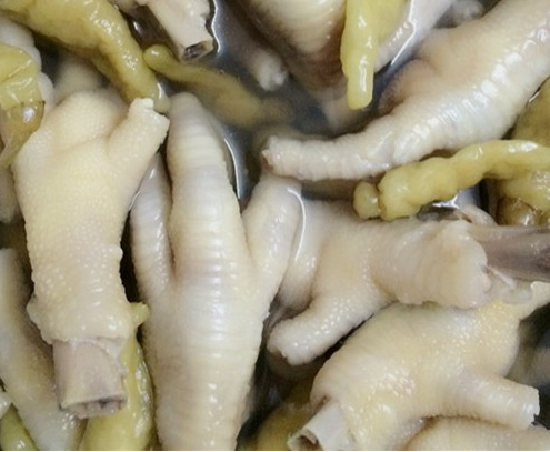 此次查獲的僵尸肉中,雞爪占了相當大的比例。此前,南寧警方發現一些雞爪中包裝日期顯示封存于1967年。這將近“50歲”的雞爪,想必沒有人敢吃。但是這些雞爪在經過特殊處理后,一般人很難分辨。比如重辣的泡椒鳳爪,可以將過期雞爪本身的刺鼻味道掩蓋。