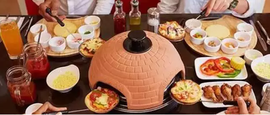 將自己做好的比薩餅放入桌面的小烤爐中,在開心聊天中等侯吧!烤爐時間當然根據食材來設定。