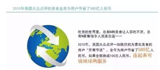 2月2日,美團大眾點評發布《2015年國人餐飲消費報告》,稱2015年,美團、大眾點評幫助消費者在餐飲消費方面節省了580億元。