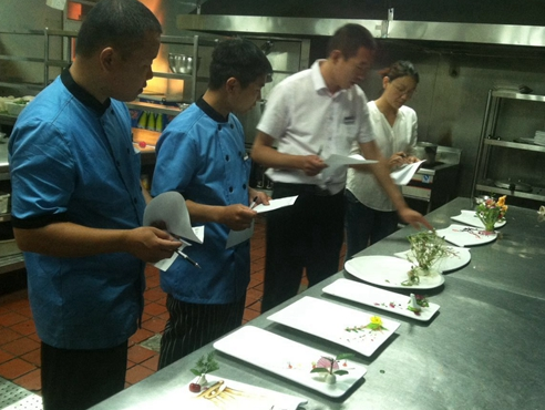 上面這個例子的核心是物盡其用。再給大家舉個例子,在上海很多酒店都有制作白切雞,而我們酒店每天就能用好幾十只。以前,浸雞的水用完后都倒掉了,現(xiàn)在,我們把這些水都收集起來,提清后用來燒煨一些菌類,效果非常好,也可以替代清水用來吊湯。
