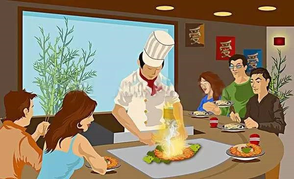 餐廳娛樂化這很常見,如吃飯有人彈奏音樂,堂食有鮑魚公主服務(wù)之類的。但是讓廚師在顧客面前表演烹飪,并且快速提高翻臺率的方法,你知道嗎?