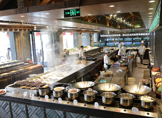 相對(duì)于大多數(shù)土菜館的夫妻檔,江南大院打造了手藝過(guò)硬的廚師團(tuán)隊(duì),他們?cè)诋a(chǎn)品上,通過(guò)對(duì)蕭山美食的巧妙解讀來(lái)表現(xiàn)蕭山的豐富傳統(tǒng)、歷史與文化。在蕭山土菜館,通過(guò)明檔和菜品,將傳統(tǒng)技術(shù)與現(xiàn)代風(fēng)格進(jìn)行結(jié)合,向人們展示經(jīng)過(guò)精心設(shè)計(jì)最能代表蕭山的菜肴。