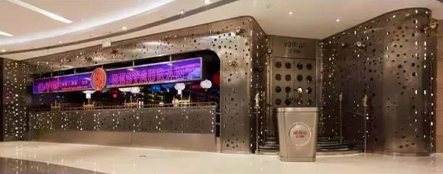 遠處看像盤踞在商場里的金屬洞穴,外圍用不銹鋼緊緊包裹,墻壁上安置了碩大的金銀兩色蜘蛛。在進門處,運用高科技手段,用水幕再現了一個逼真的水簾洞。餐桌上每個蜘蛛都帶上了緊箍咒,這些蜘蛛也成為嘻游記餐廳的標志元素。設計時沒有刻意去塑造西游記的形象,而是用很多插畫來表達現代想象。翻開菜單就像是翻開一本故事書,菜名都非常有西游記特色,例如“俺老孫最!薄ⅰ芭畠簢拇簤簟薄ⅰ八扇籽笥笞辖鹄彙钡。
