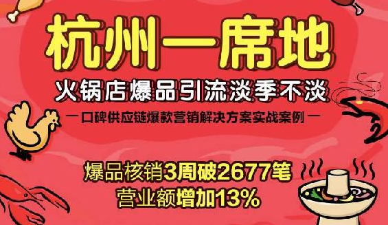 “夏季是火鍋淡季,我們也一直想要開發(fā)應季爆品,但又面臨著研發(fā)能力有限、供應鏈短板、新品營銷等等難題,并沒有十足的把握。”杭州本地雞窩火鍋 “一席地”的管理人杜帥帥笑言,“沒想到,今年通過與‘口碑貨源市場’合作,火鍋店的業(yè)績竟然實現(xiàn)了逆勢增長!”