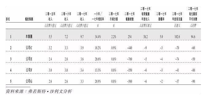 以下為中國五大火鍋餐飲集團的數據(以總收入計):