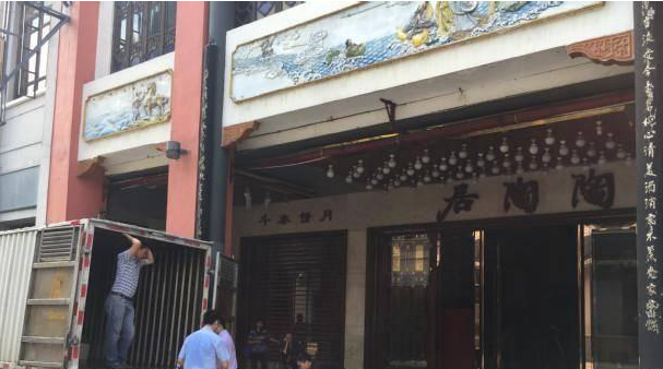 9時30分許,一輛小貨車開到陶陶居店門前,店員開始把店內打包好的設備搬上車。