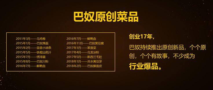如他所說(shuō),“創(chuàng)業(yè)17年巴奴持續(xù)推出原創(chuàng)新品,個(gè)個(gè)都是原創(chuàng)并在業(yè)內(nèi)打響,個(gè)個(gè)有故事,不少成為行業(yè)爆品”。